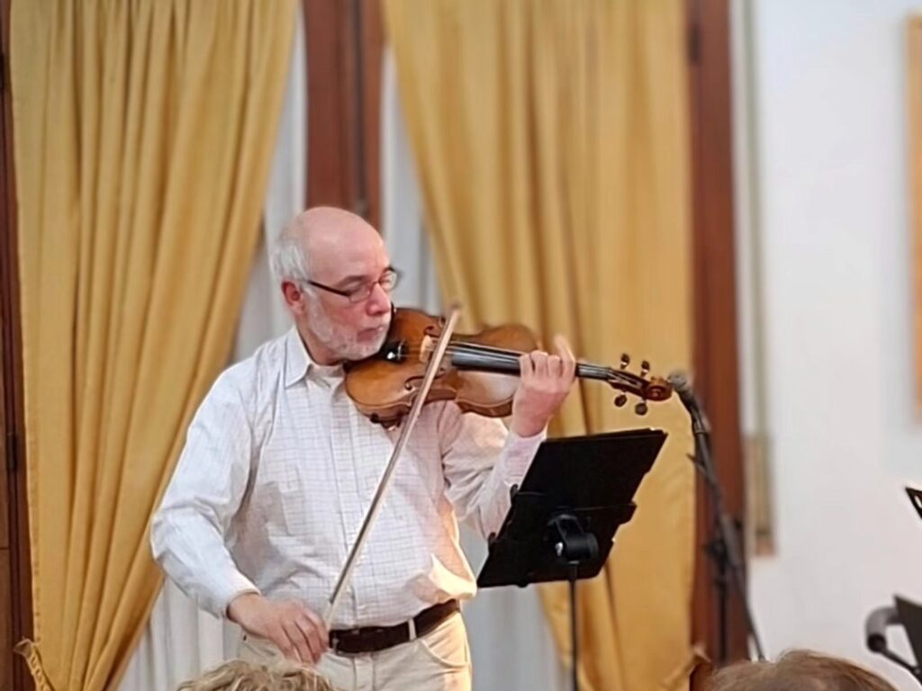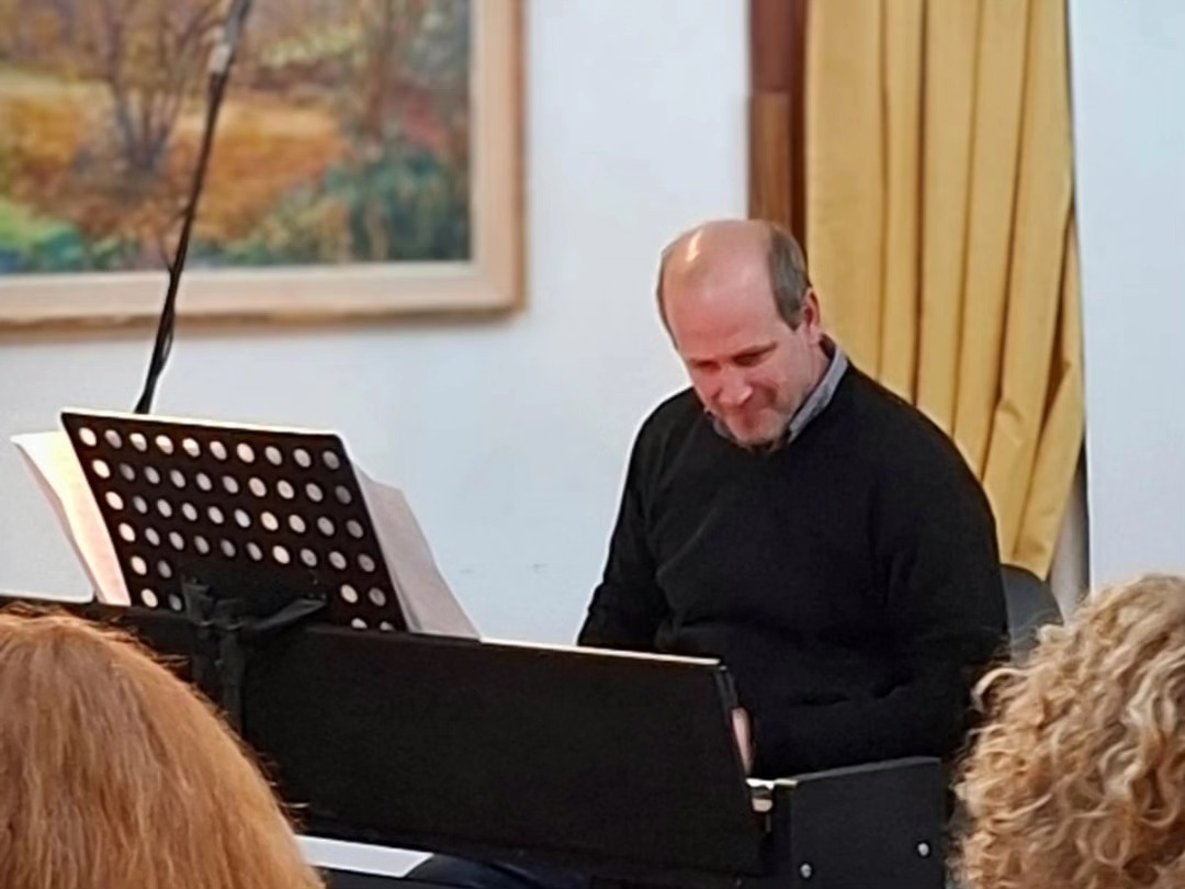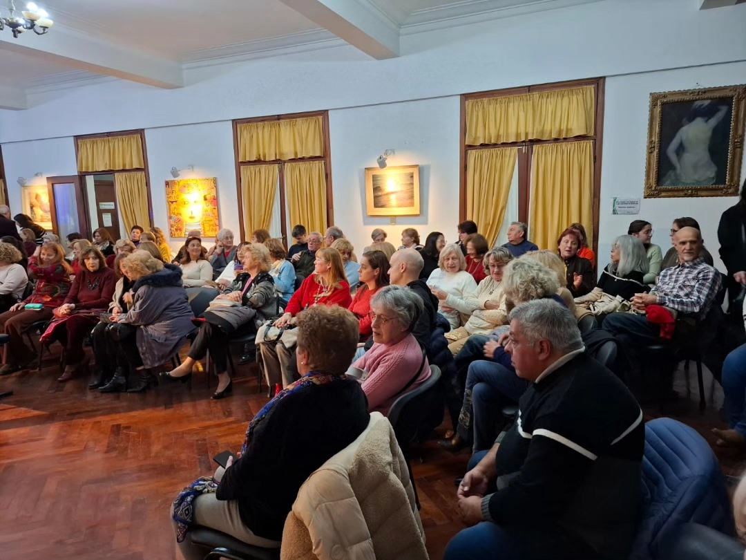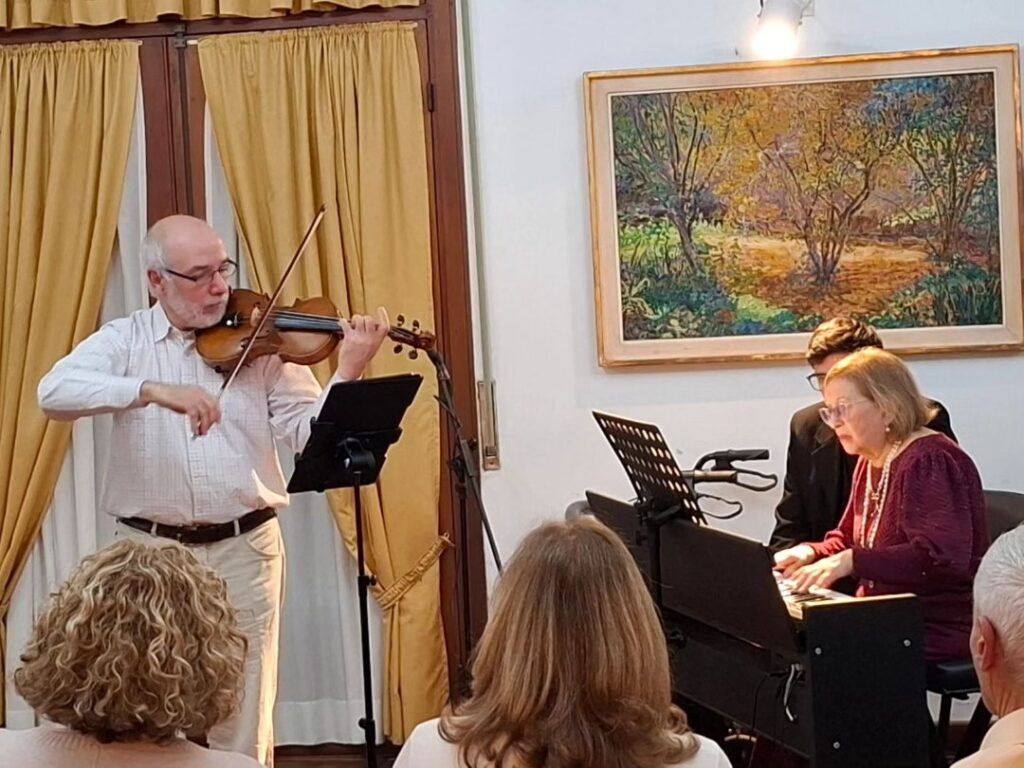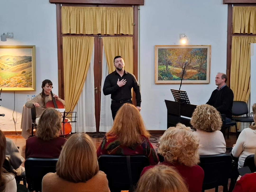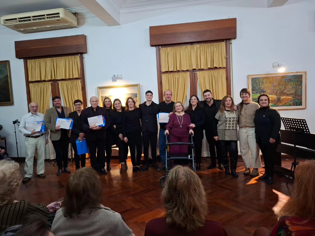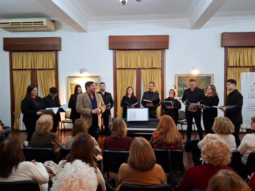 La velada comenzó con la presentación del ensamble vocal “Siamo”, bajo la dirección de César Vasconi, seguido por el pianista Fernando González, quien interpretó obras del repertorio argentino.